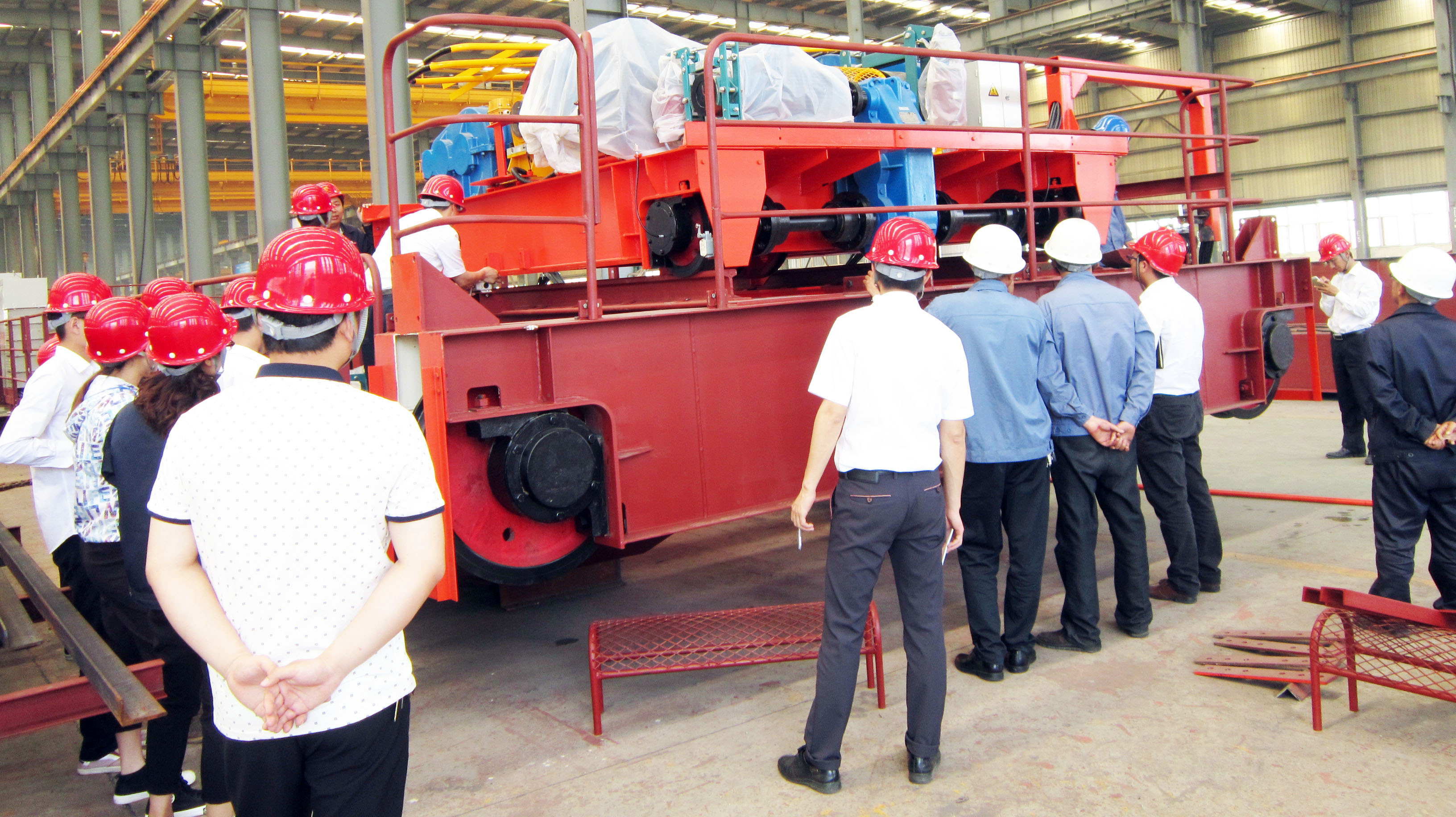 5月21日上午,大方公司總經(jīng)理胡旭、生產(chǎn)副總李曉寧帶領(lǐng)技術(shù)部、質(zhì)量保障部和生產(chǎn)班組長對已經(jīng)制作完畢的QD32/5t-22.6m雙梁起重機進行場內(nèi)組裝驗收、評審。胡總和大家一起來到現(xiàn)場認真查看評審樣機,評審過程中發(fā)現(xiàn)的問題大家相互討論,從電纜橋架的合理布置到電器柜底座的安裝,從小車運行的極限位置到限位開關(guān)、緩沖器的位置調(diào)整,從小車導(dǎo)電架的高度到小車安全底座的尺寸是否符合圖紙等等,大家都認真討論,暢所欲言,現(xiàn)場提出自己的整改意見。不知不覺兩個小時就過去了,評審現(xiàn)場的氣氛還是那么的濃烈,大家積極測量、實驗和討論,**終提出了近20條提升質(zhì)量的改進建議。