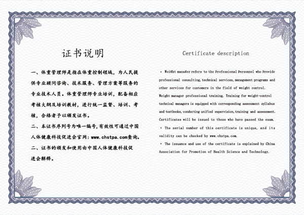 體重管理師技能證書(shū)