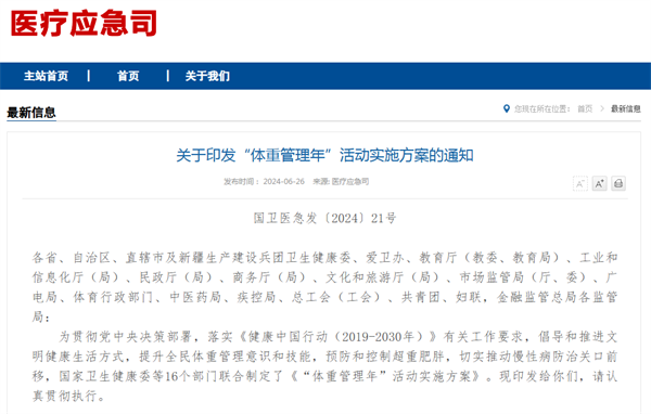2024年6月,國家衛(wèi)生健康委聯(lián)合16個部門印發(fā)《“體重管理年”活動實施方案》,標志著我國進入“體重管理元年”。該方案以三年為周期,旨在通過多樣化形式和跨部門協(xié)作探索體重管理新模式,構建全民健康新格局。