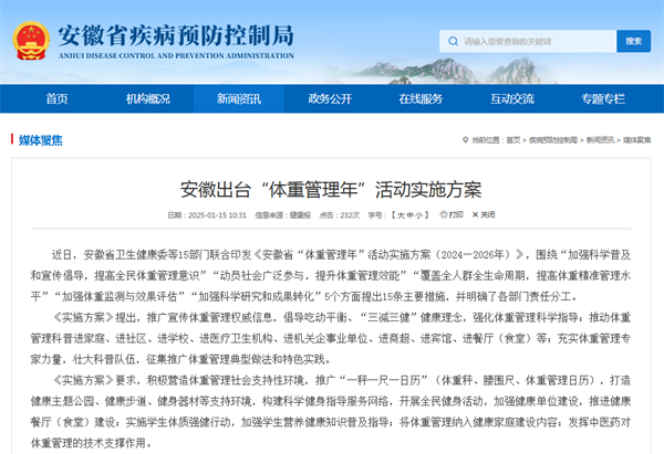 《安徽省“體重管理年”活動實施方案》
