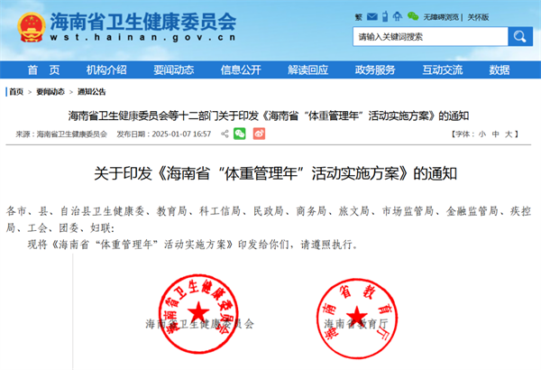 《海南省“體重管理年”活動實施方案》