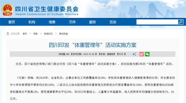 《四川省“體重管理年”活動實施方案》