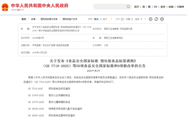 國家衛(wèi)生健康委、市場監(jiān)管總局公布50項(xiàng)食品安全國家標(biāo)準(zhǔn)和9項(xiàng)修改單。消費(fèi)者特別關(guān)心的“零添加”、食物過敏、鹽油糖標(biāo)示等內(nèi)容,均有明確規(guī)定,旨在進(jìn)一步提升食品安全保障水平,維護(hù)公眾健康,促進(jìn)食品產(chǎn)業(yè)高質(zhì)量發(fā)展。