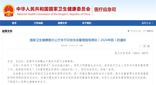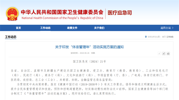 政策目標:自2024年起,力爭通過三年左右時間,實現(xiàn)體重管理支持性環(huán)境廣泛建立,全民體重管理意識和技能顯著提升,健康生活方式更加普及,全民參與、人人受益的體重管理良好局面逐漸形成,部分人群體重異常狀況得以改善。