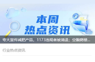 1、空姐現(xiàn)場稱重,超重10%立即停飛!律師:海航新規(guī)涉嫌違法… 2、“賈玲要減肥100斤”沖上熱搜!網(wǎng)友:不敢想象 3、軟糖、果凍有“神效”?公司因虛假宣傳被罰10萬元 4、57歲男子為減肥連吃100天麥當(dāng)勞,居然瘦了60磅! 5、網(wǎng)購原料在家中生產(chǎn)有毒有害減肥藥